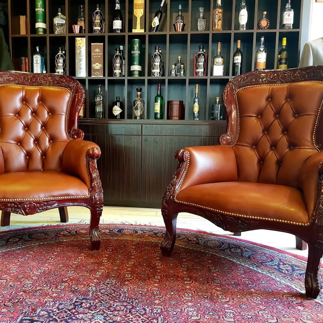 Langjährige Erfahrung in Chesterfield Polstermöbel. Das Leder wird in einem charakteristisch geknüpften Rautenmuster in Falten gelegt und mit Lederknöpfen auf dem Rahmen befestigt. Ausschließlich in Handarbeit.